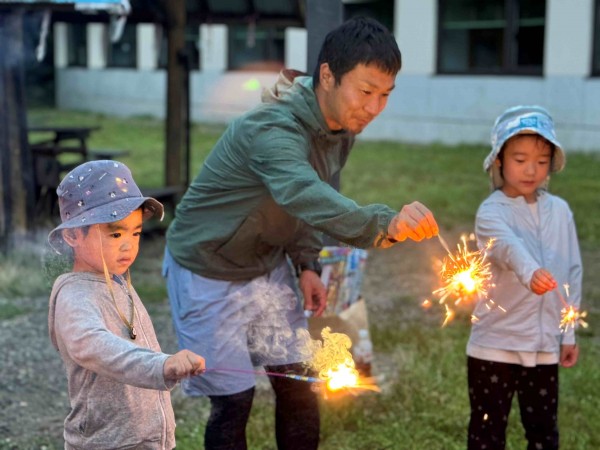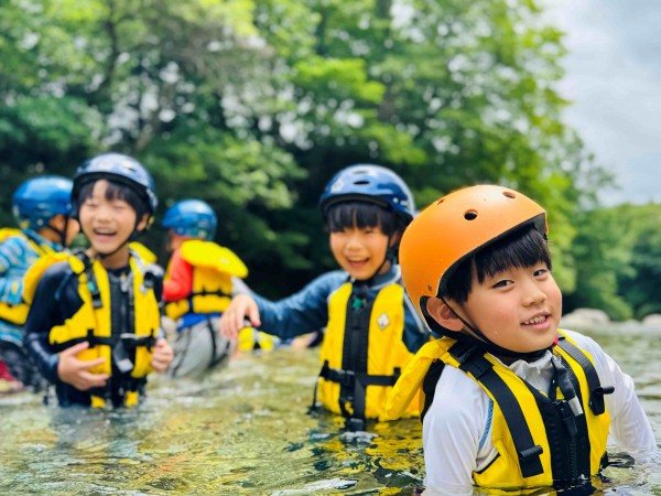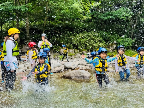 7月18日~19日、年長児が一泊二日の自然体験合宿を行いました。行き先は豊かな自然に囲まれた登別。ライフジャケットとヘルメットを着けて安全に川遊びを楽しみ、トンボやカワゲラの幼虫、クワガタなど多くの生き物と出会いました。夜にはゲンジボタルの幻想的な光も観察できました。